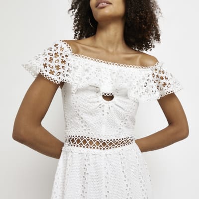 River island white lace bardot 2025 dress